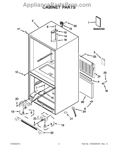 The Leveling Leg is an OEM replacement part for Whirlpool refrigerators. It is one of four legs situated internally at the base corners for proper tilt positioning. It raises or lowers each leg independently to stabilize units on uneven kitchen floors. Causes of replacement consist of wear from continual torque required during positioning processes. Thread damage or corrosion buildup attributable to floor locations over extended use necessitates periodic renewal as well. Symptoms involve: