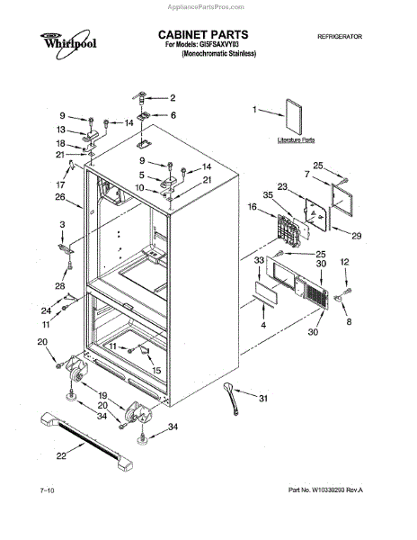 The Screw is an OEM part for Whirlpool refrigerators. This screw secures the refrigerator door hinge in place, allowing the door operates smoothly and seals properly.