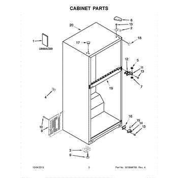 Unit cover for top-mount refrigerators. Protects internal components and provides finished appearance. Replace if cracked, broken, or missing.