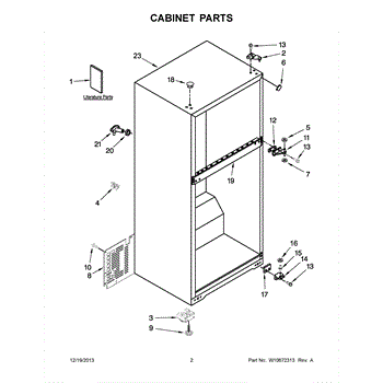 Seals refrigerator door to prevent air leaks and temperature loss. Replace when worn, cracked, or no longer forming a tight seal. Verify fit by model.