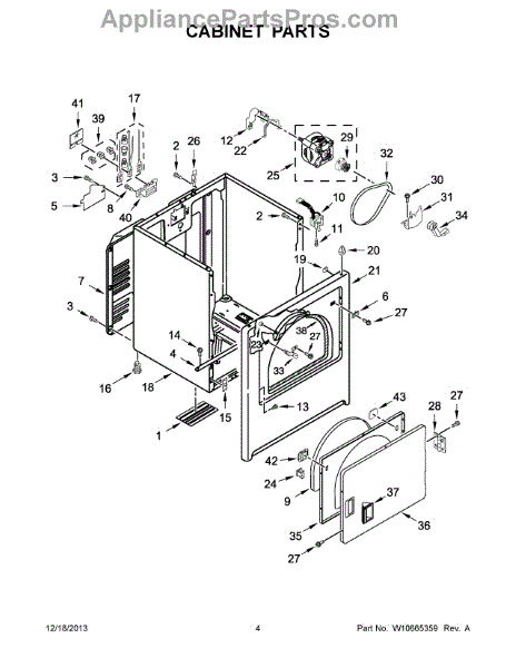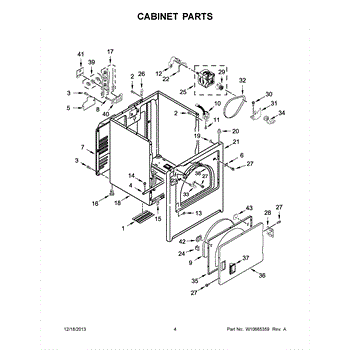 Dryer outer cabinet that houses internal components. Replace if your cabinet is rusted, dented, cracked, or damaged, compromising structural integrity.