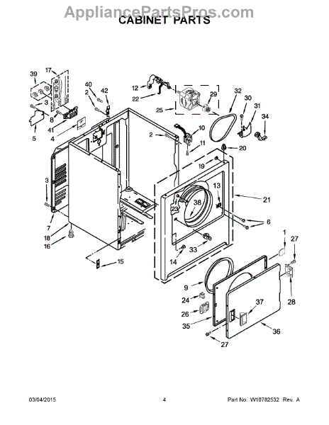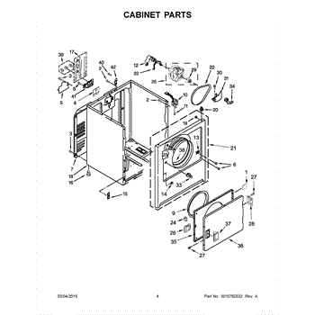 Dryer outer cabinet that houses internal components. Replace if your cabinet is rusted, dented, cracked, or damaged, compromising structural integrity.
