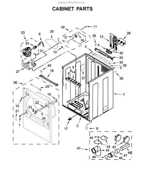 This lower cabinet base replaces a worn or damaged support panel that stabilizes the appliance and houses lower components. Restoring the base improves cabinet alignment and helps prevent vibration and under-cabinet damage. What it does: