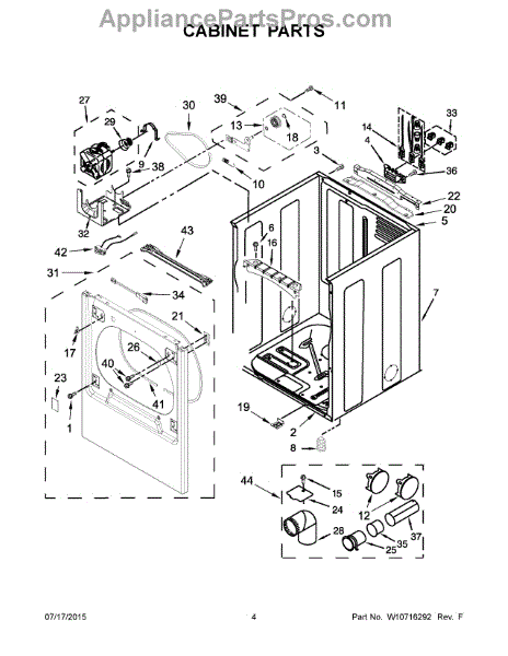 Directs heated air from dryer drum to household vent. Replace if cracked, damaged, or airflow is restricted. Confirms fit for compatible dryer models listed.