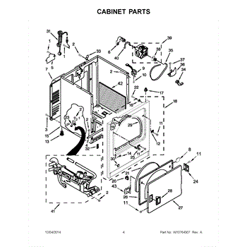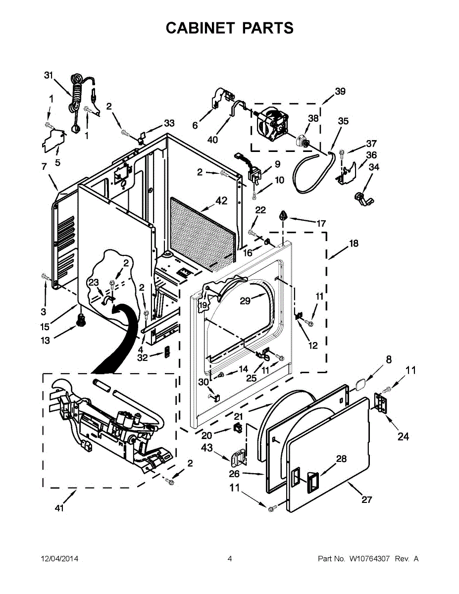 Dryer outer cabinet that houses internal components. Replace if your cabinet is rusted, dented, cracked, or damaged, compromising structural integrity.