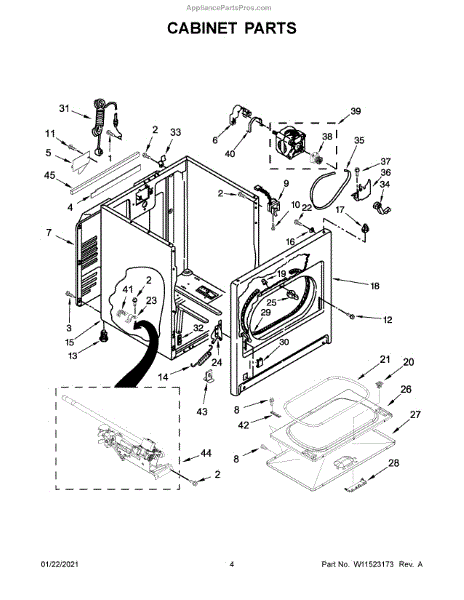 This rear panel is the exterior back cabinet piece that covers and protects a dryer or washer's internal components and provides mounting support for rear-mounted parts. It restores the appliance's structural back and keeps lint, moisture, and debris out. What it does: