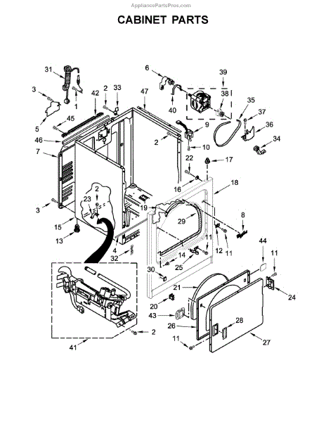 Causes of a bad door catch can include wear and tear of the plastic tang and spring from years of repeated opening and closing of the dryer door. Over time, this limits its ability to fully engage and latch securely.