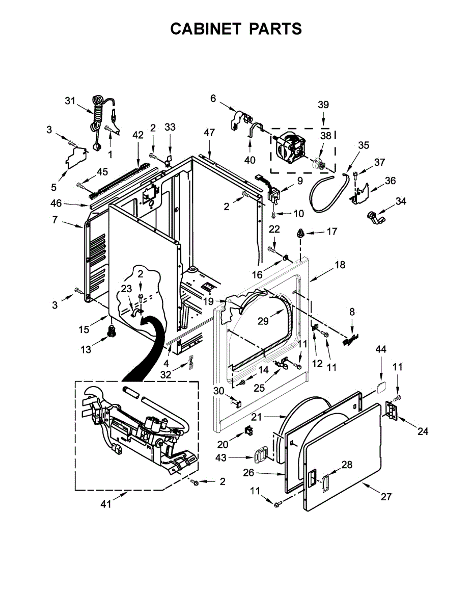 This rear panel is the exterior back cabinet piece that covers and protects a dryer or washer's internal components and provides mounting support for rear-mounted parts. It restores the appliance's structural back and keeps lint, moisture, and debris out. What it does: