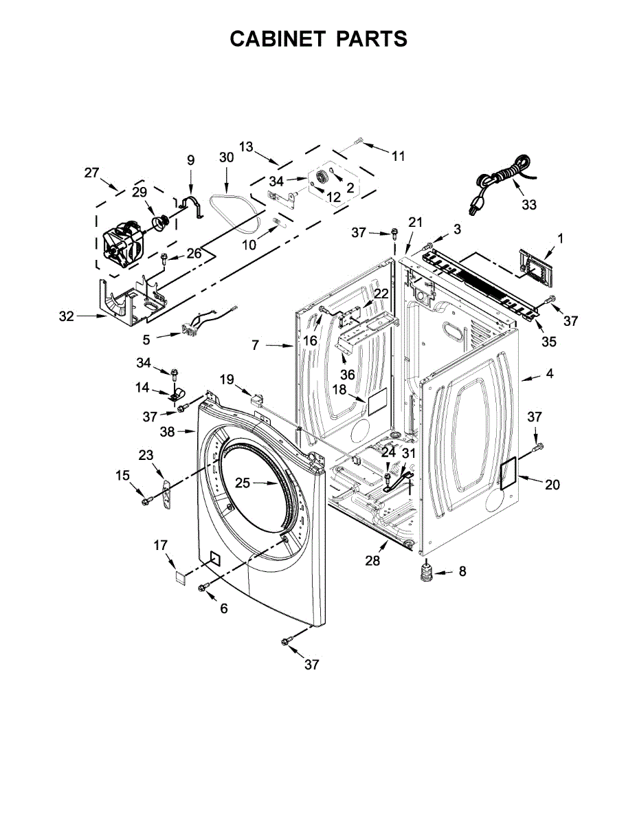This rear bracket secures the dryer's rear panel and helps align internal components for stable operation. It restores proper fit and support when the original bracket is bent, broken, or missing. What it does: