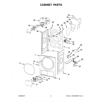 Adjustable leveling foot that supports and stabilizes your dryer. Replace if cracked, broken, or missing to prevent wobbling and ensure proper balance.