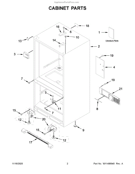 This replacement toe grille installs at the bottom front of the refrigerator. The 30-inch black kickplate finishes the look and helps protect and ventilate the condenser area. Replace a cracked or missing grille to restore appearance and airflow.