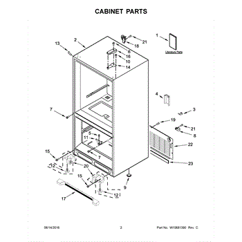 The Leveling Leg is an OEM replacement part for Whirlpool refrigerators. It is one of four legs situated internally at the base corners for proper tilt positioning. It raises or lowers each leg independently to stabilize units on uneven kitchen floors. Causes of replacement consist of wear from continual torque required during positioning processes. Thread damage or corrosion buildup attributable to floor locations over extended use necessitates periodic renewal as well. Symptoms involve: