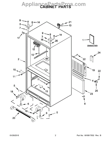 The Front Grille is an OEM replacement part for Whirlpool refrigerators. It is a decorative grille situated at the front bottom of the refrigerator that serves an important role in airflow. The grille allows for ventilation while protecting interior components from collecting dust and debris. Causes of a bad grille can be prolonged exposure to dirt and contaminants preventing proper ventilation, or damage from impact that deforms or cracks the grille structure. Symptoms of a bad grille include: