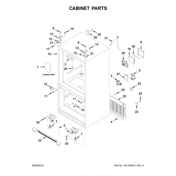 Water fill tube that connects from the back of the refrigerator cabinet into the ice maker fill cup. Replace if cracked, broken, or leaking water.