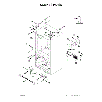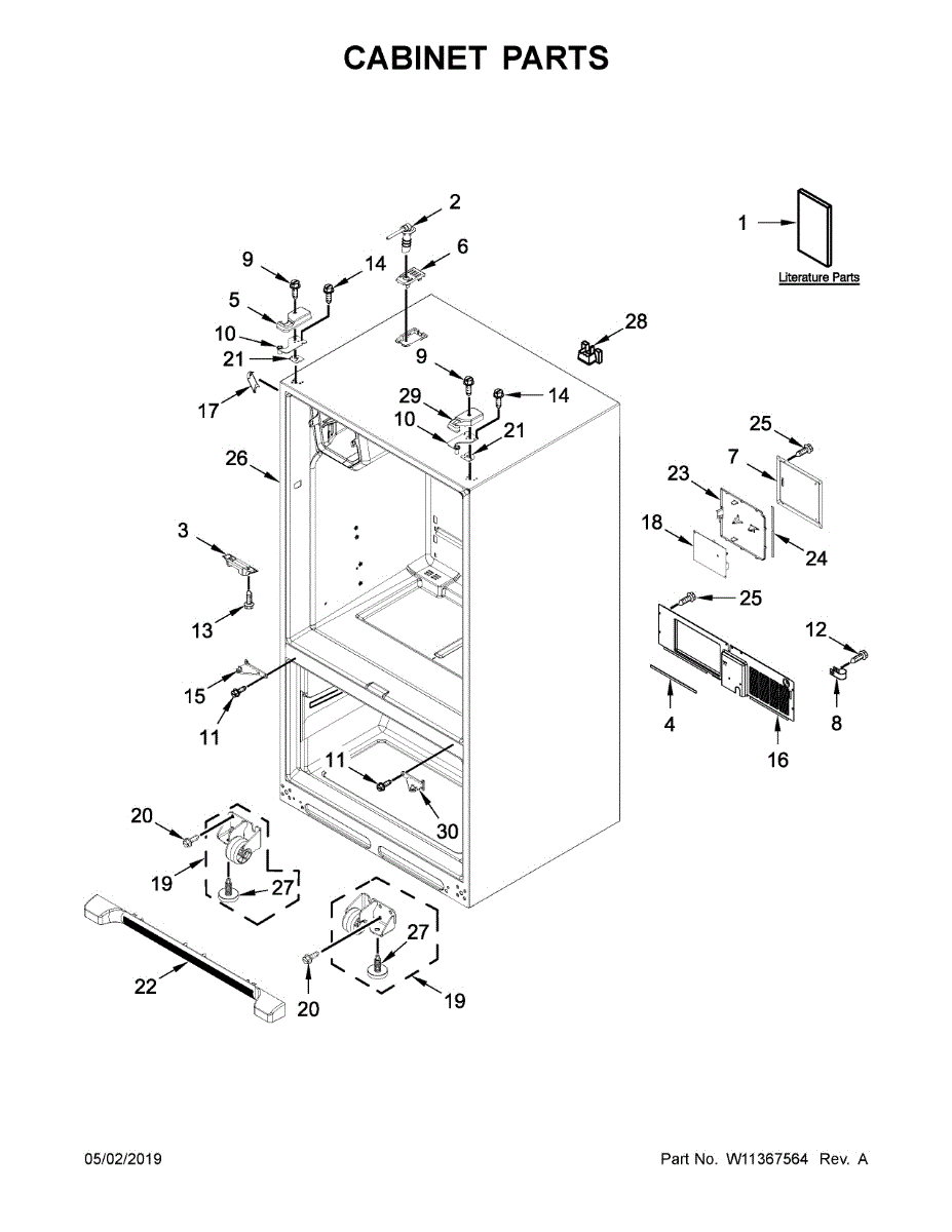 This hinge cover assembly conceals and protects the door hinge area, providing a clean look while shielding wiring and moving parts from dust and moisture. It restores proper coverage if the original cover is cracked, missing, or loose.