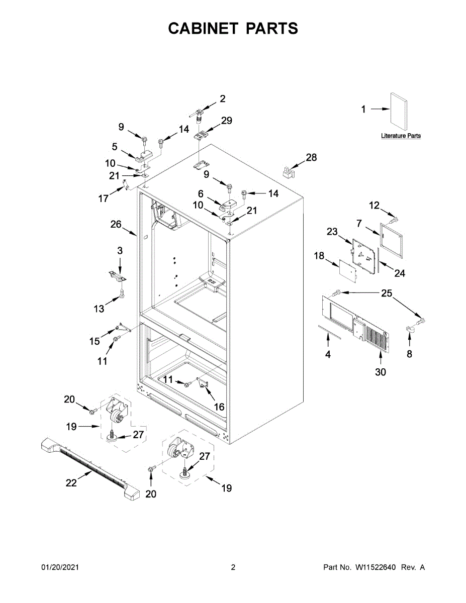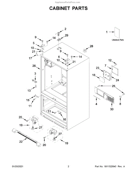 This hinge cover assembly conceals and protects the door hinge area, providing a clean look while shielding wiring and moving parts from dust and moisture. It restores proper coverage if the original cover is cracked, missing, or loose.