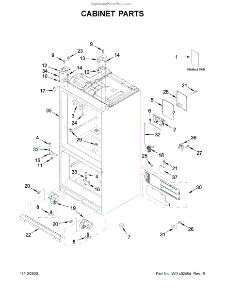 Replaces cracked, broken, or missing refrigerator hinge cover. Protects door hinge hardware and restores finished appearance on exterior trim.