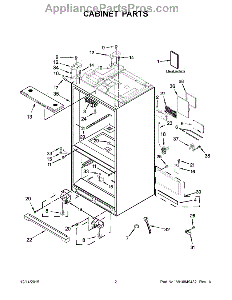 The Leveling Leg is an OEM replacement part for Whirlpool refrigerators. It is one of four legs situated internally at the base corners for proper tilt positioning. It raises or lowers each leg independently to stabilize units on uneven kitchen floors. Causes of replacement consist of wear from continual torque required during positioning processes. Thread damage or corrosion buildup attributable to floor locations over extended use necessitates periodic renewal as well. Symptoms involve:
