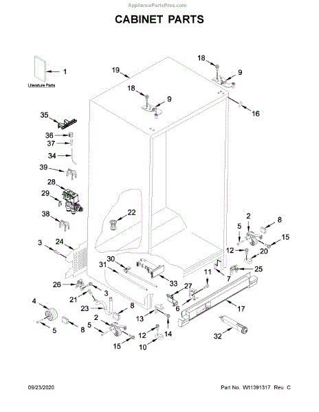 Supports and pivots refrigerator or freezer doors. Replace this hinge assembly if your door is sagging, has worn pivot points, or was lost during a move.