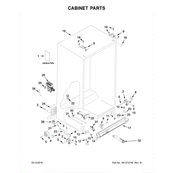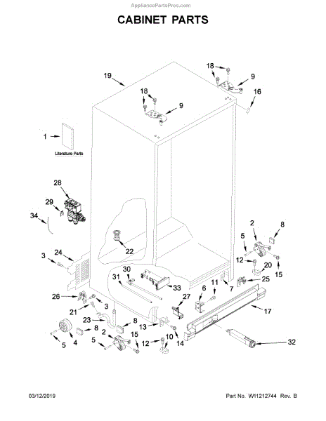 Cabinet roller axle supports refrigerator wheels for smooth movement. Replace if rollers wobble or fridge is hard to move. Verify fit with your model.