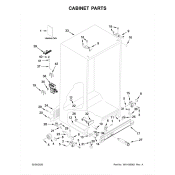 Cabinet roller axle supports refrigerator wheels for smooth movement. Replace if rollers wobble or fridge is hard to move. Verify fit with your model.
