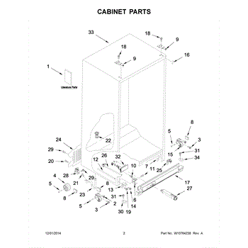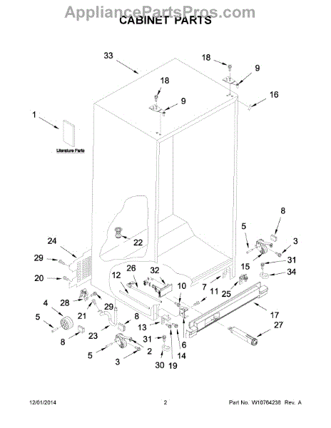 Causes of a bad Lower Refrigerator Door Hinge and Closure Cam Assembly can include wear and tear from normal use, improper door alignment or installation, excessive force when opening or closing the door, or corrosion due to moisture and other environmental factors.