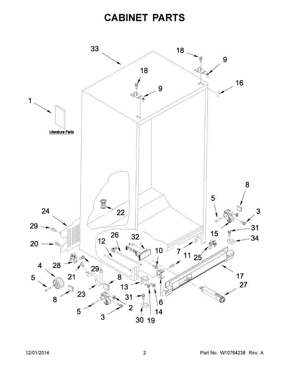 Causes of a bad Lower Refrigerator Door Hinge and Closure Cam Assembly can include wear and tear from normal use, improper door alignment or installation, excessive force when opening or closing the door, or corrosion due to moisture and other environmental factors.