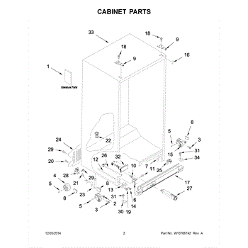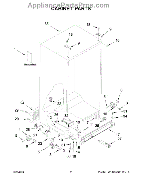 Cabinet roller axle supports refrigerator wheels for smooth movement. Replace if rollers wobble or fridge is hard to move. Verify fit with your model.