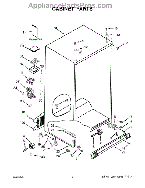 The Leveling Leg is an OEM replacement part for Whirlpool refrigerators. It is one of four legs situated internally at the base corners for proper tilt positioning. It raises or lowers each leg independently to stabilize units on uneven kitchen floors. Causes of replacement consist of wear from continual torque required during positioning processes. Thread damage or corrosion buildup attributable to floor locations over extended use necessitates periodic renewal as well. Symptoms involve: