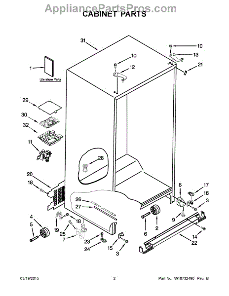The Leveling Leg is an OEM replacement part for Whirlpool refrigerators. It is one of four legs situated internally at the base corners for proper tilt positioning. It raises or lowers each leg independently to stabilize units on uneven kitchen floors. Causes of replacement consist of wear from continual torque required during positioning processes. Thread damage or corrosion buildup attributable to floor locations over extended use necessitates periodic renewal as well. Symptoms involve: