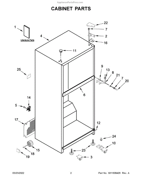 The Hinge Washer is an OEM replacement part for Whirlpool refrigerators. This small washer plays a supports the refrigerator door hinge assembly. Center hinge plastic washer. Causes of a bad hinge washer are generally normal wear and tear from extensive use. As the washer absorbs pressure each time the door is opened or closed, it can gradually deteriorate or crack. Physical damage is also possible if the door is accidentally struck or slammed. Symptoms of a worn or damaged hinge washer include: