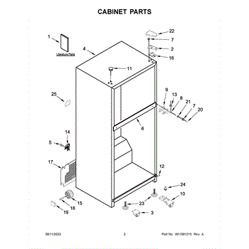 The Hinge Washer is an OEM replacement part for Whirlpool refrigerators. This small washer plays a supports the refrigerator door hinge assembly. Center hinge plastic washer. Causes of a bad hinge washer are generally normal wear and tear from extensive use. As the washer absorbs pressure each time the door is opened or closed, it can gradually deteriorate or crack. Physical damage is also possible if the door is accidentally struck or slammed. Symptoms of a worn or damaged hinge washer include: