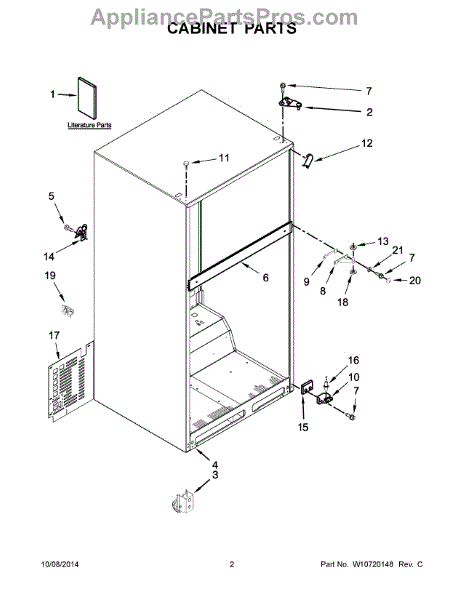 Unit cover for top-mount refrigerators. Protects internal components and provides finished appearance. Replace if cracked, broken, or missing.