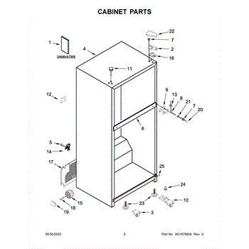 Parts for Whirlpool WRT138FFDB03: Cabinet Parts