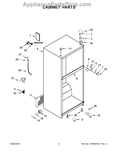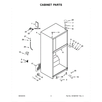 The Hinge Washer is an OEM replacement part for Whirlpool refrigerators. This small washer plays a supports the refrigerator door hinge assembly. Center hinge plastic washer. Causes of a bad hinge washer are generally normal wear and tear from extensive use. As the washer absorbs pressure each time the door is opened or closed, it can gradually deteriorate or crack. Physical damage is also possible if the door is accidentally struck or slammed. Symptoms of a worn or damaged hinge washer include: