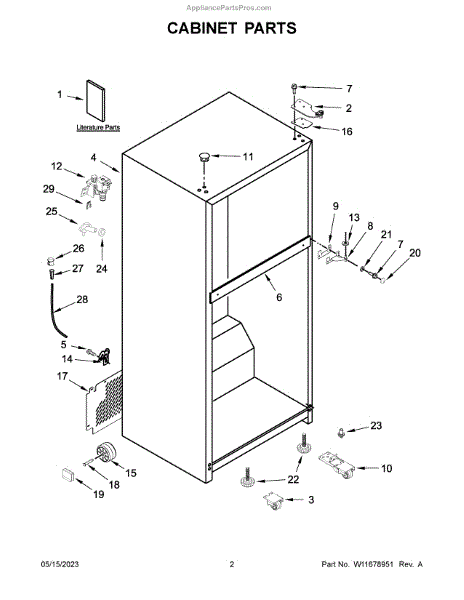 Cabinet roller axle supports refrigerator wheels for smooth movement. Replace if rollers wobble or fridge is hard to move. Verify fit with your model.