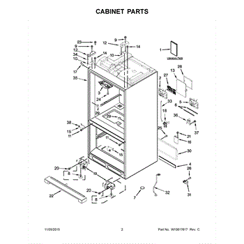 The Roller Assembly is an OEM part for Whirlpool refrigerators. It contains heavy-duty ball bearing rollers located along the bottom front-right cabinet. Repeatedly maneuvering fully-loaded refrigerators can cause cabinet rollers to crack or bearing races to deteriorate over extended use. Potential failure causes include structural cracks from strong impacts or bearing lubrication washing away from repeated wet cleaning. Symptoms of faulty cabinet rollers include: