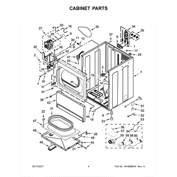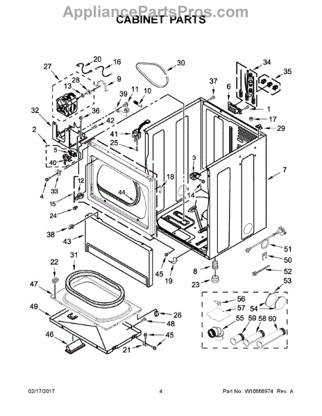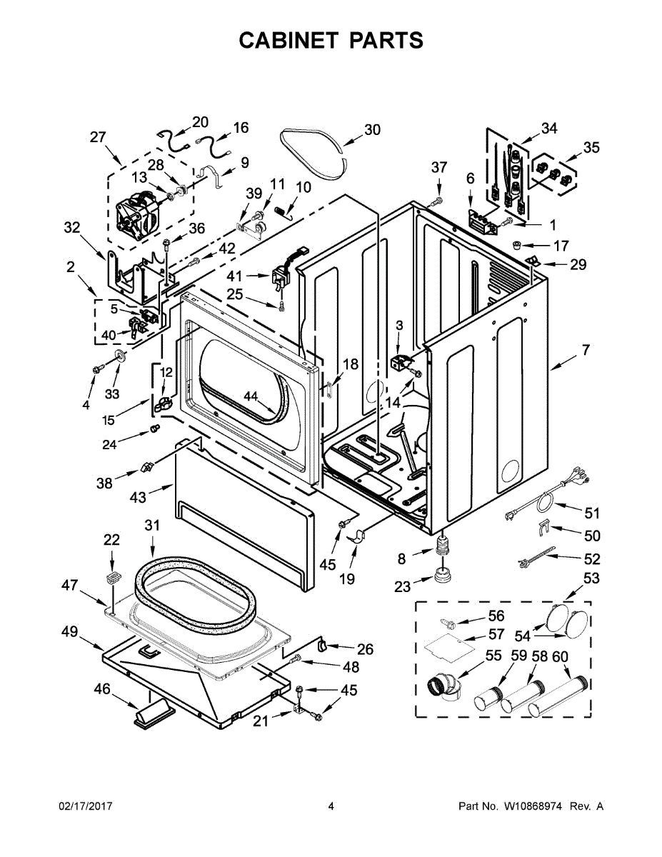Cabinet housing for dryers. This outer shell encases internal components. Replace if cracked, rusted, dented, or structurally damaged from impact or wear.