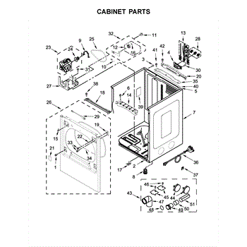Outer cabinet housing for your dryer. Replace if the exterior shell is cracked, rusted, damaged, or structurally compromised from wear or impact.