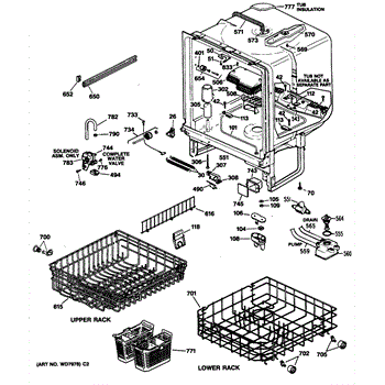 • Works with the dishwasher's fill and wash functions to maintain normal operation