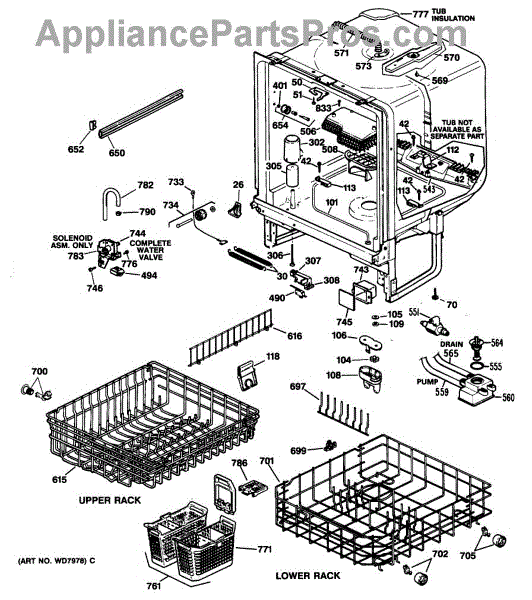 The Upper Rack is an OEM replacement part for GE dishwashers. It provides movable shelf space along the top of the dishwasher interior for washing plates, bowls, and other dishes. The shelves feature an adjustable design that accommodates various sizes and configurations of dishware. Causes of failure include normal wear and tear, accidental impacts that damage shelves or cleaning chemicals stripping away protective coatings. Symptoms of a bad upper rack can include: