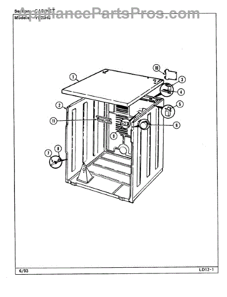 Parts for Magic Chef YE20HN3: 01 - Cabinet (Rev. G-K / 10) Parts