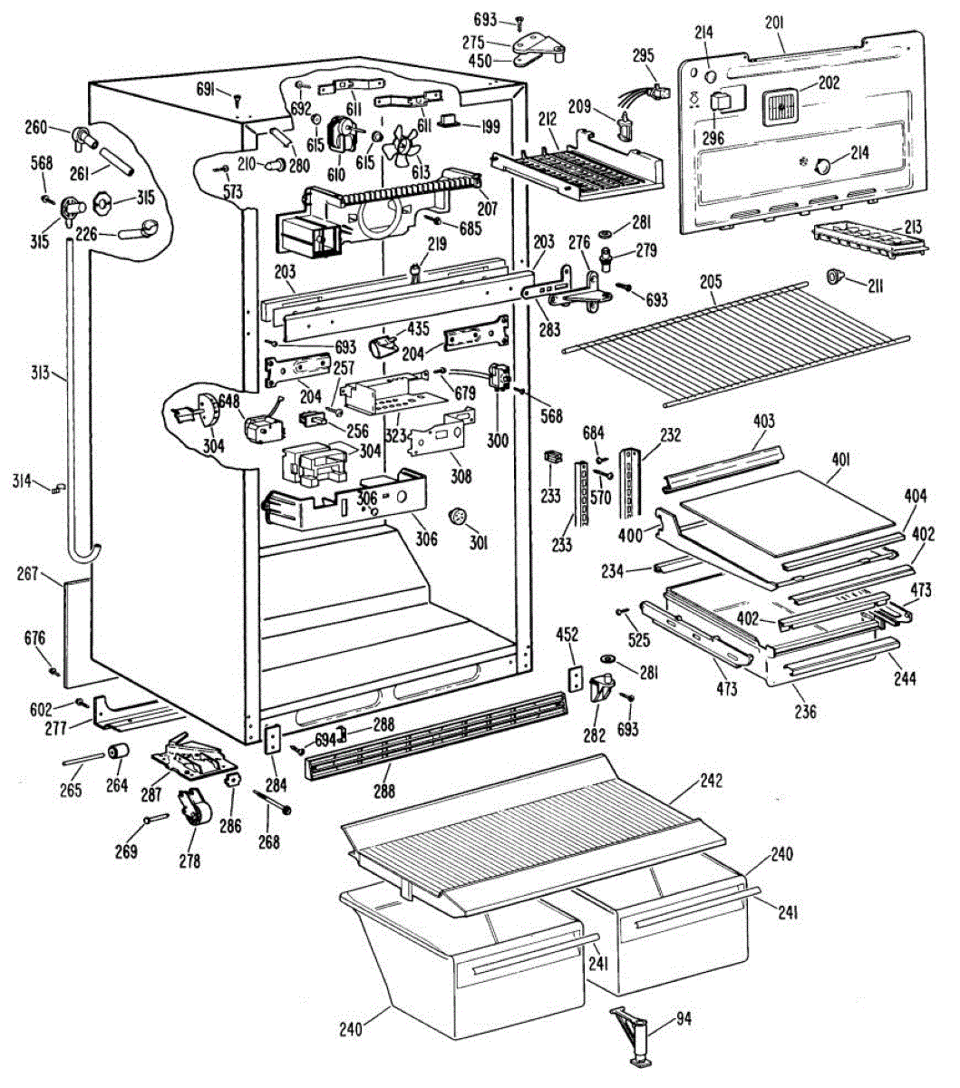 • Remove freezer shelves/ice bin and the rear panel to access the fan assembly