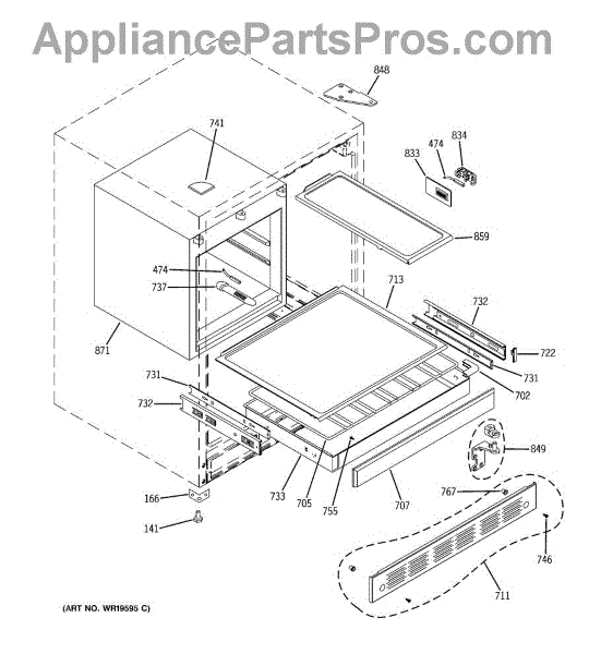 This front frame is the outer trim piece that restores the appliance's appearance and helps hold adjacent panels and components in place. It replaces damaged or worn trim to close gaps and improve fit. What it does: