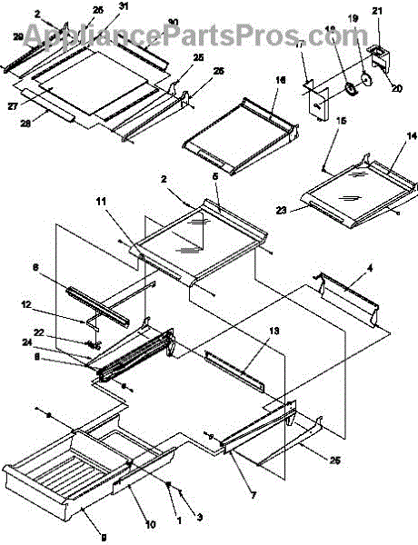 Parts for Amana TP19AL-P1300601WL: Cabinet Shelving Parts