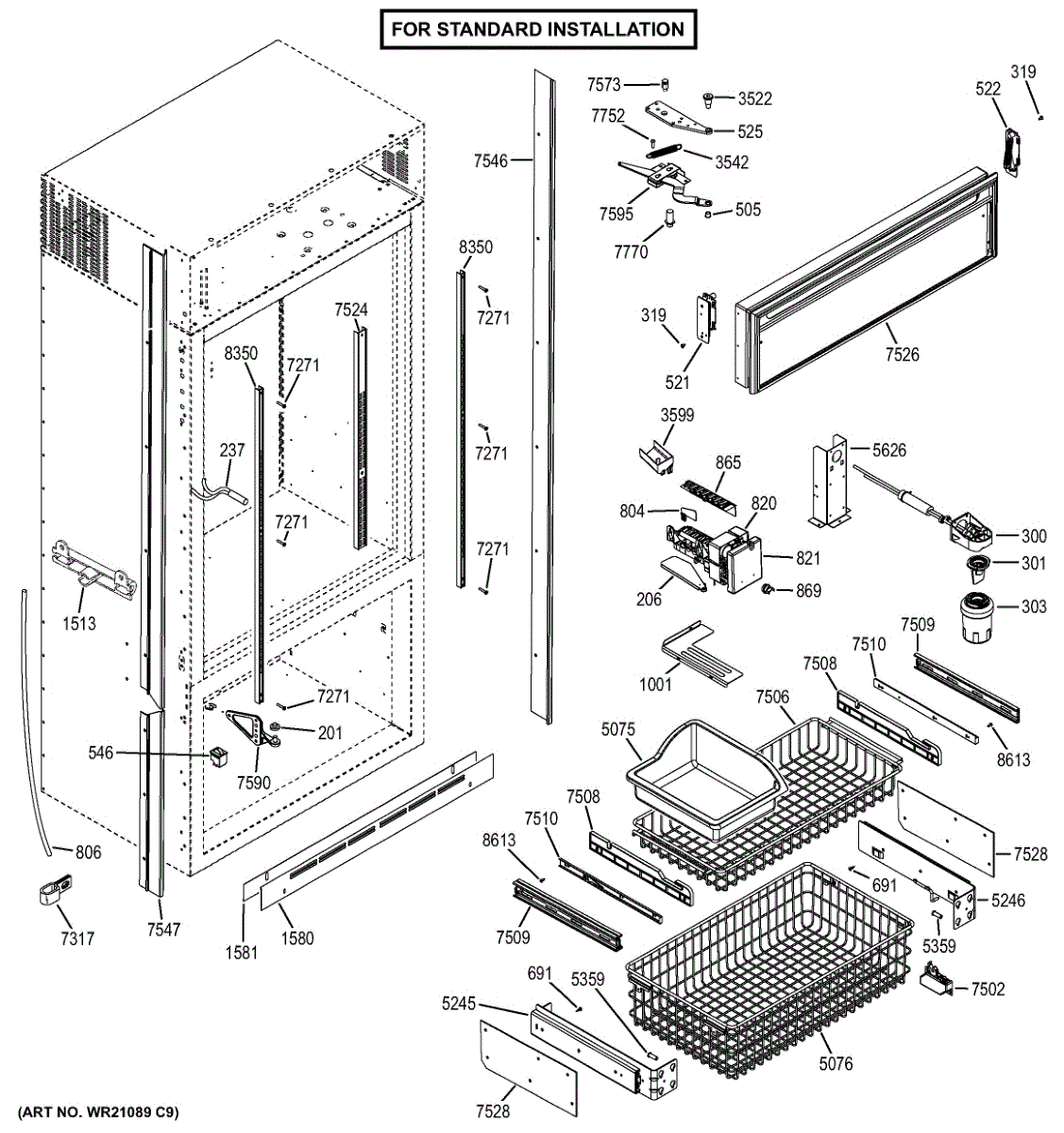 This support mounts to the freezer wall and holds the upper basket in place. Replace a broken or missing support to restore proper alignment and smooth in-out movement of the basket and prevent sagging or jams.