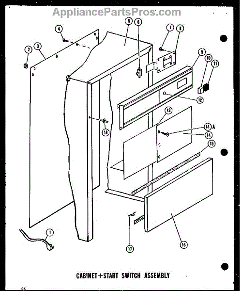 Parts for Amana SMC-1/P18011-1T: Cabinet + Start Switch Assembly Parts