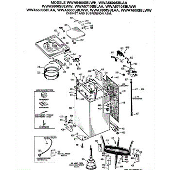 Parts for Ge WWA7600SBLWW: 02 - Cabinet And Suspension Asm. Parts