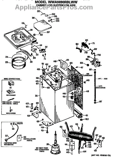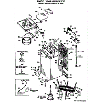 Parts for Ge WWA9890RBLWW: Cabinet And Suspension Parts