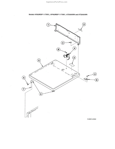 Parts for Alliance CTSA0AWN: Cabinet Top / Control Hood Rear Panel Parts